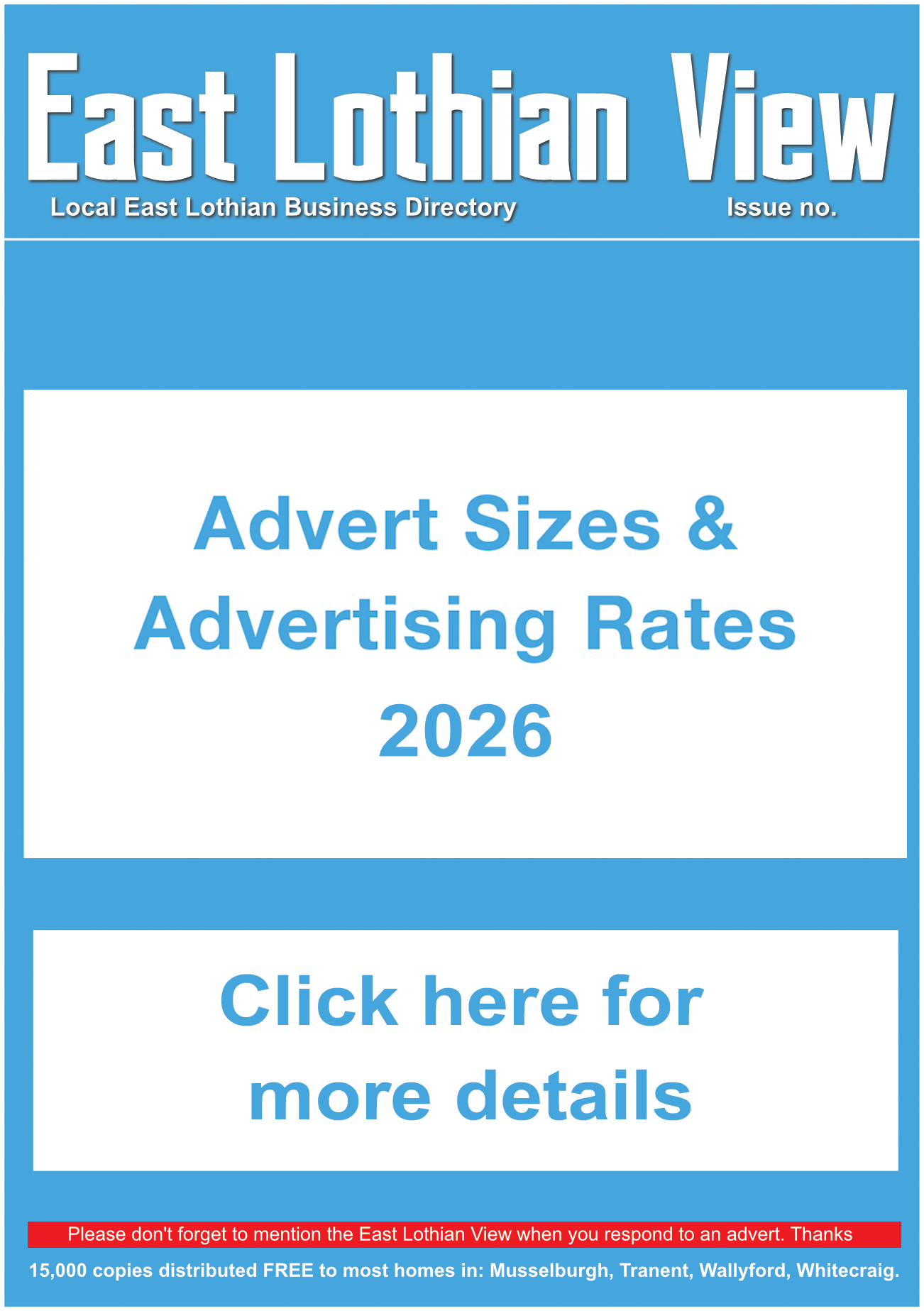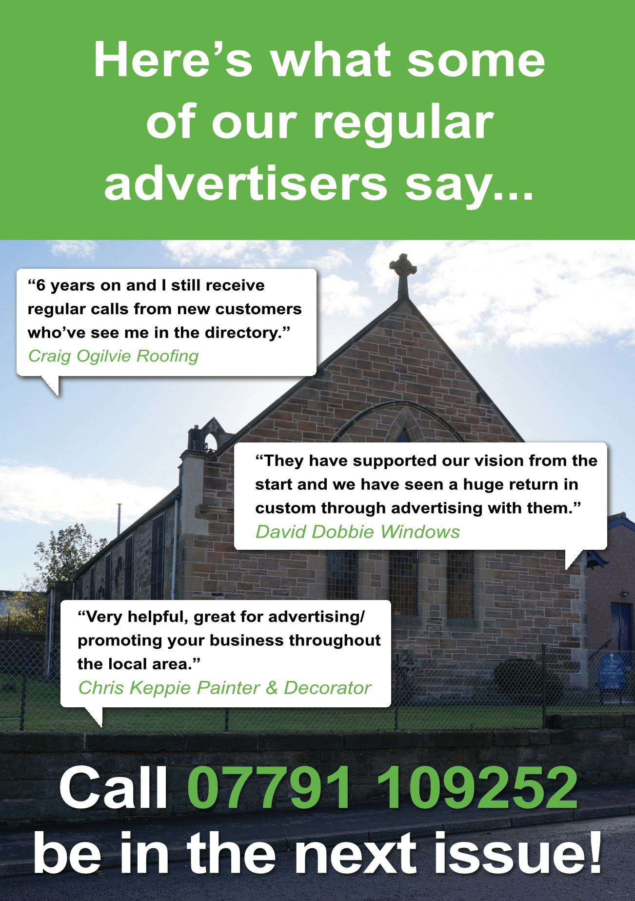 15,000 copies distributed FREE to most homes in: Musselburgh, Tranent, Wallyford, Whitecraig.